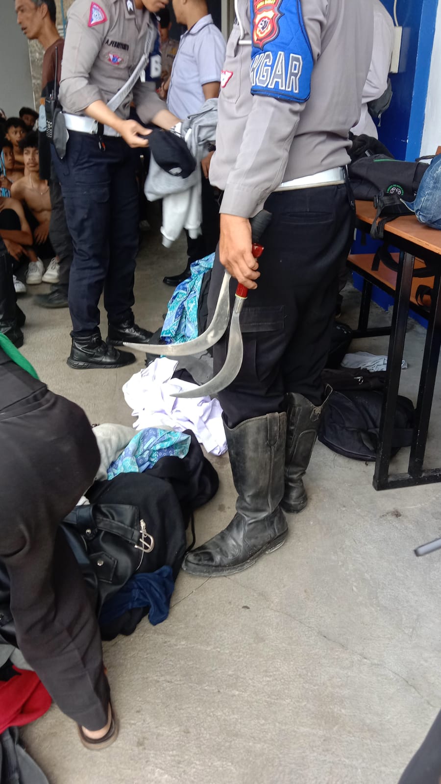 Petugas langsung melakukan pemeriksaan terhadap para siswa dan menemukan dua bilah senjata tajam dari dalam tas siswa siswa. Para siswa itu selanjutnya dibawa ke Mapolres Cianjur untuk didata dan dilakukan pembinaan sebelum diserahkan kembali kepada orang tuanya masing-masing.