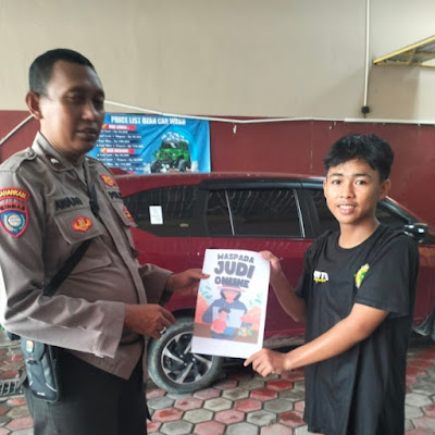 Bhabinkamtibmas Polsek Benowo Surabaya, Aipda Hari Awang tidak putus semangat menghimbau kepada masyarakat untuk tidak terlibat dalam kegiatan judi online.